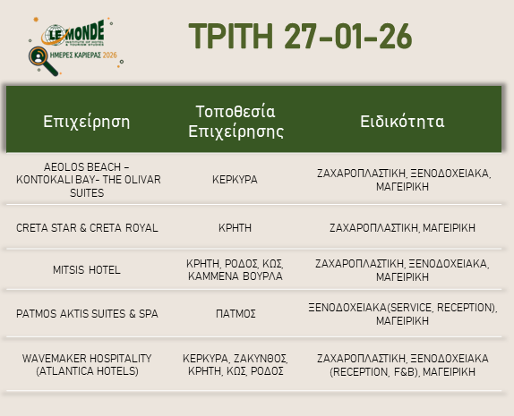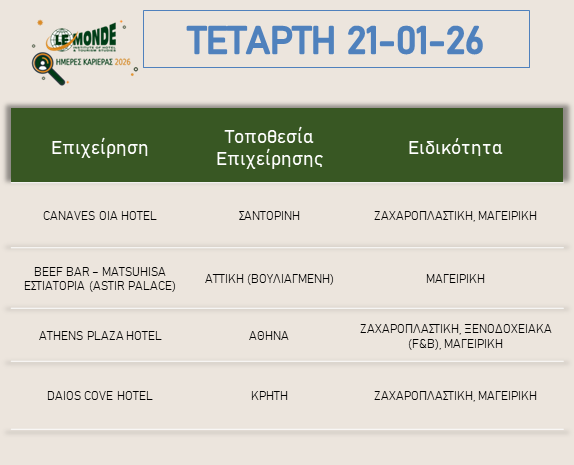 Μπορείτε να συμμετέχετε σε όσα Career Days επιχειρήσεων επιθυμείτε.