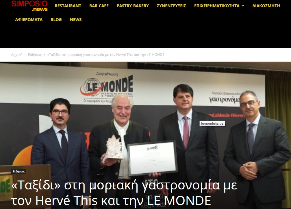 Η εκδήλωση πραγματοποιήθηκε στο πλαίσιο της dans LE MONDE μια πρωτοβουλία του Εκπαιδευτικού Ομίλου LE MONDE, με καλεσμένους διακεκριμένες προσωπικότητες με διεθνή εμβέλεια και επιδραστικό ρόλο στις διεθνείς τάσεις της γαστρονομίας, της ζαχαροπλαστικής και του τουρισμού. Στόχος της νέας δράσης είναι η διαρκής γνώση και η άμεση επαφή των φοιτητών με τις διεθνείς εξελίξεις. Διαβάστε το άρθρο στο simposio.news